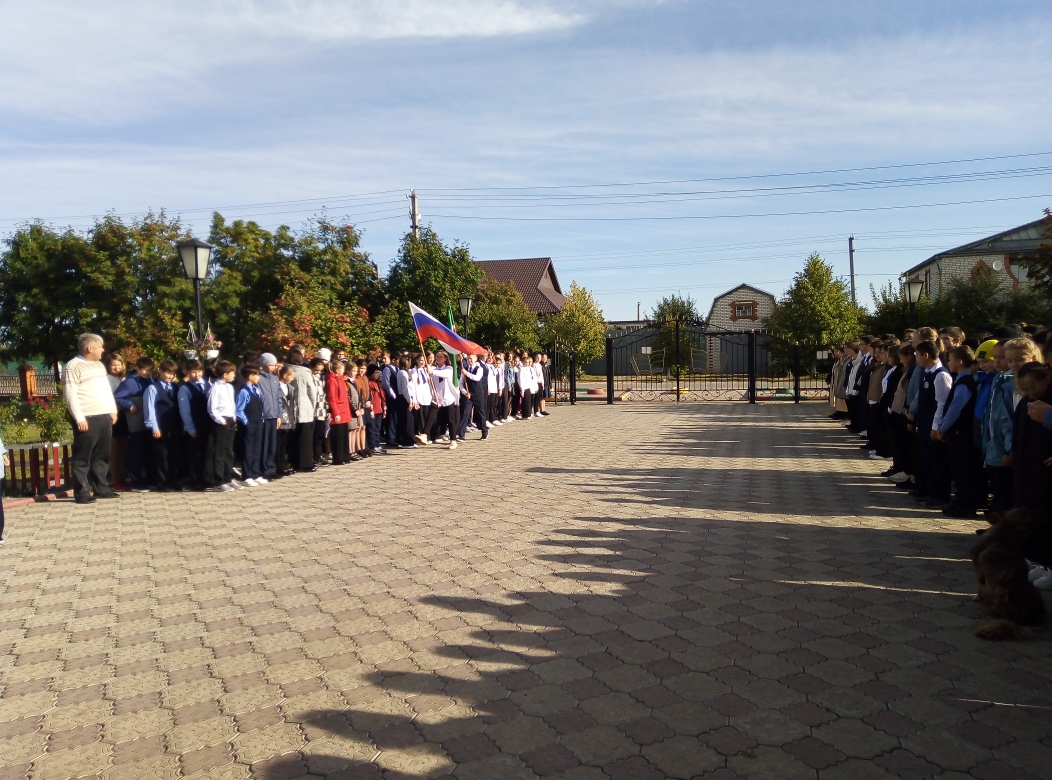 Открытие новой учебной недели церемонией поднятия флага и исполнения гимна.