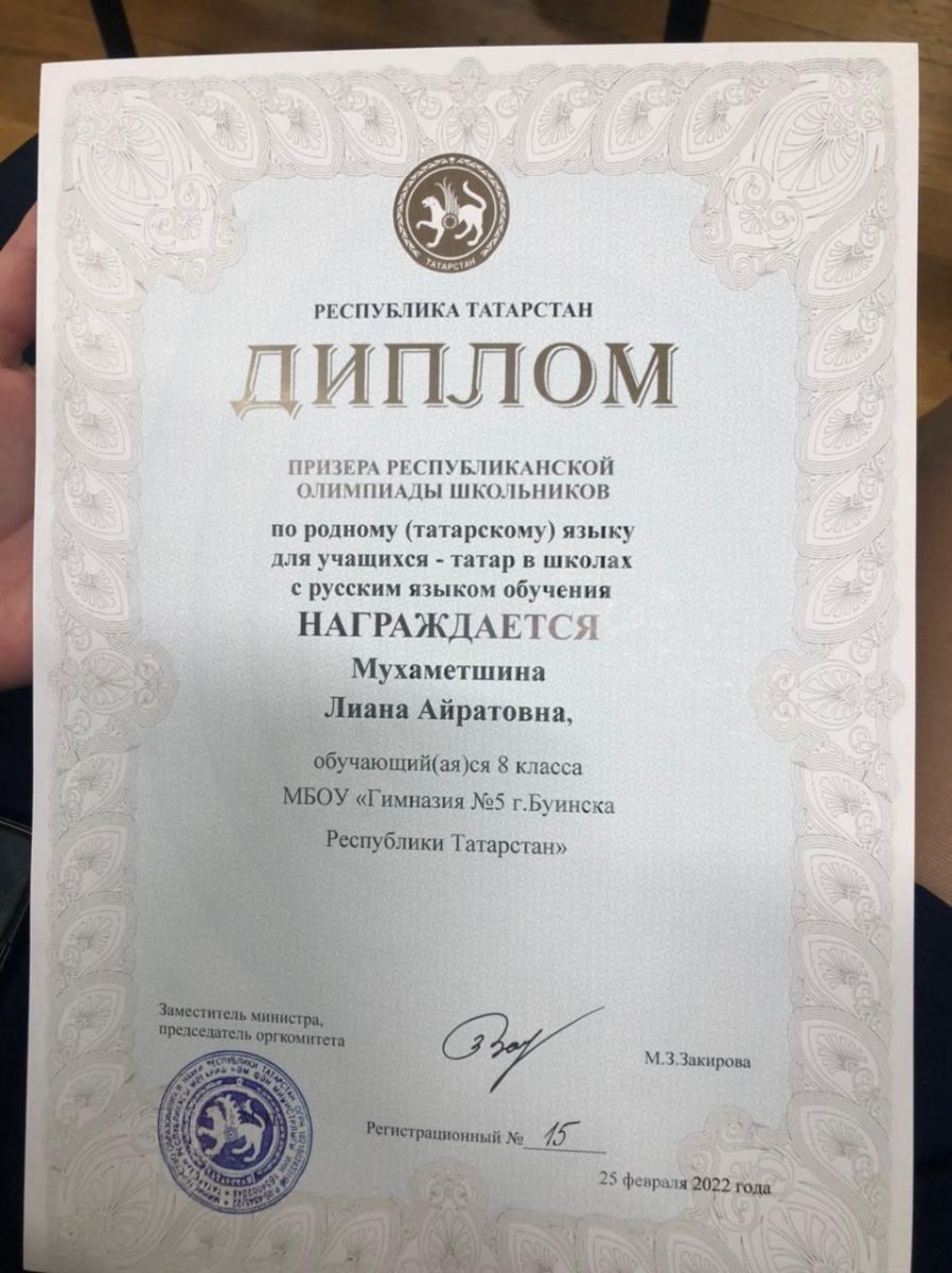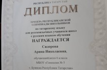 ПОЗДРАВЛЯЕМ Сидорову Арину, призёра Республиканского этапа олимпиады по татарскому языку. Учитель-Загретдинова Л. Н. Молодцы!