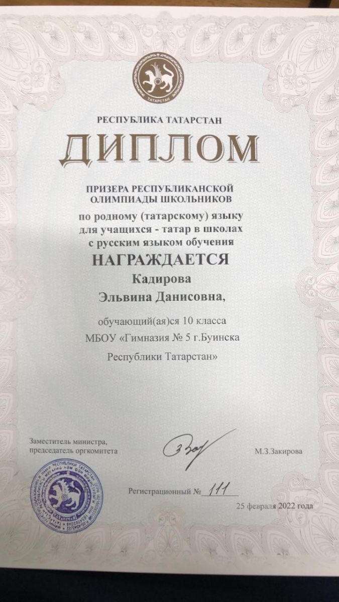 Призёрами республиканской олимпиады по татарскому языку среди учащихся татарских групп школ с русским языком обучения стали: