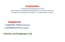 По итогам муниципального этапа Республиканской олимпиады школьников по ТАТАРСКОМУ ЯЗЫКУ ученица 6-б класса Сидорова Арина и ученик 9-а класса Сисмиков Егор стали победителями. Молодцы! Желаем дальнейших успехов.