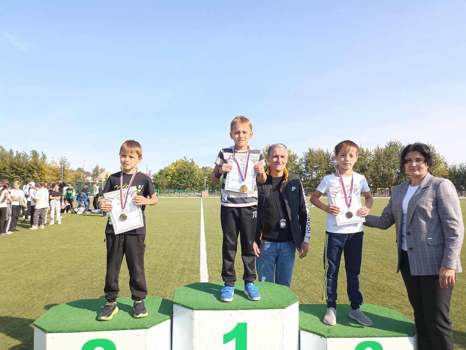 Опубликовано: 16.09.2023Сегодня, 16.09.23 прошел "Кросс Татарстана-2023", в данном кроссе приняли участие обучающиеся гимназии. Ученик 3а класса Ятокин Данил занял 1 место среди мальчиков 2014 года, ученица 7б - Алексеева Мария заняла 1 место среди девочек 2010год. Поздравляем!!