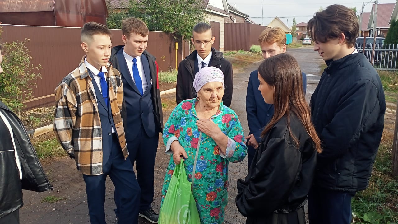 Опубликовано: 02.10.20231 октября отмечается Международный день пожилого человека. В знак глубокого уважения и внимания к людям старшего поколения кадеты 11 класса гимназии посетили на дому и поздравили ребёнка войны Чухно Лену Салахутдиновну с Днём добра и уважения. Ребята пожелали здоровья, тепла, любви близких людей и долгих лет жизни. Кадеты вручили Лене Салахутдиновне небольшие подарки.