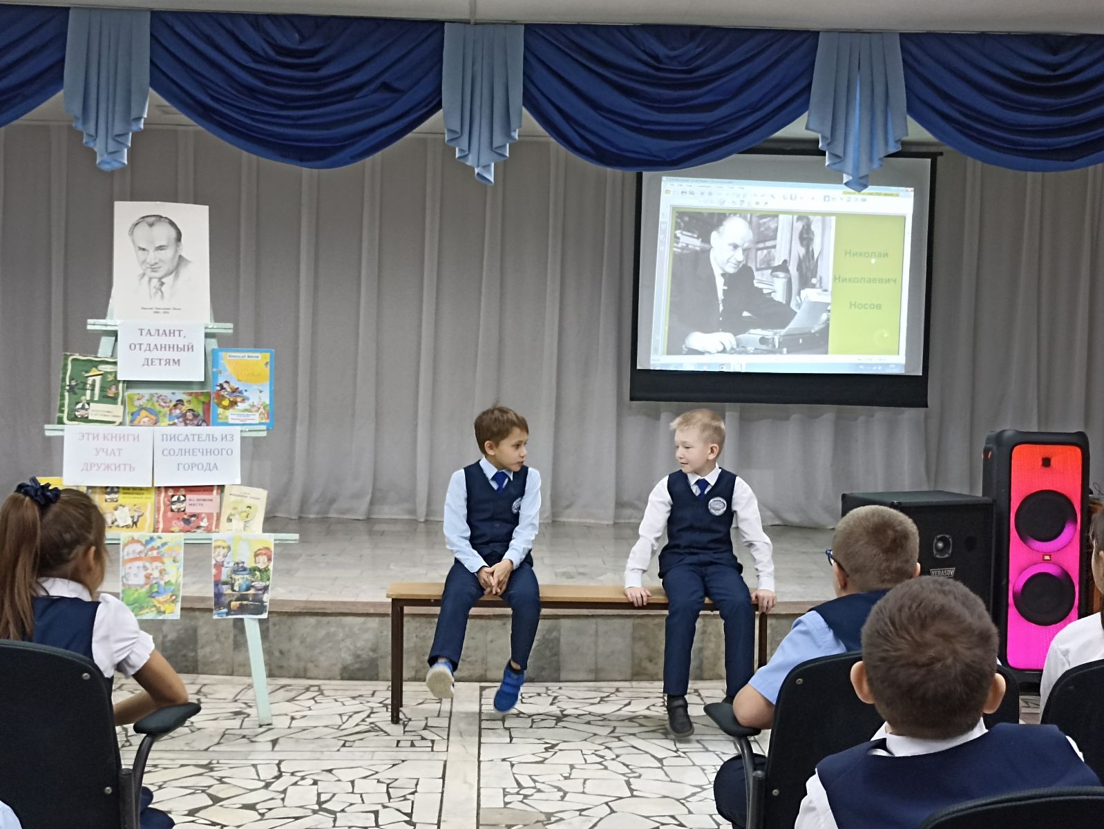 Опубликовано: 22.11.2023В 3-х классах прошло внеклассное мероприятие, посвящённое 115-летию со дня рождения детского писателя Н.Н. Носова. Обучающиеся познакомились с биографией и творчеством автора знаменитой и веселой трилогии о Незнайке , другими литературными героями.
