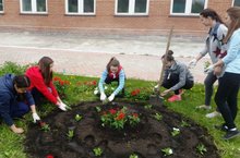 Продолжается работа на пришкольном участке. Сегодня учащиеся 10 класса высаживали цветы на территории школы.