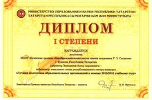 Школа стала победителем зонального этапа республиканского смотра – конкурса «Лучшая подготовка образовательных организаций к новому 2015/2016 учебному году» и награждена Дипломом I степени МО и НРТ.