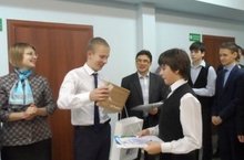 Руслана лично пришли поздравить - Стюфеев А.С., руководитель группы по связям с общественностью Управления почтовой связи РТ и специалист отдела кадров Буинского межрайонного почтамта Никифорова М.Н. На школьной линейке они вручили победителю Диплом и ценные подарки.