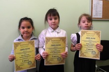Ученицы 1б класса Хайруллова Эльвира, Махмутова Амина, Самигуллина Алия стали победителями Всероссийской олимпиады по литературному чтению «Творчество С.Я.Маршака» (Руководитель – Алексеева Н.Н.) Поздравляем!