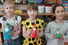 Прошла рубрика "Мастерская добрых дел". Ребята изготовили матрешки из пластиковых бутылок.