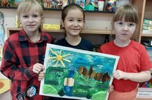 Прошла рубрика "Мастерская добрых дел". Воспитанники изготовили коллективную работу "Край любимый и родной - нет тебя красивей!" из бросового материала (губка для мытья посуды, бамбуковые шпажки, пластиковые крышки, листья деревьев, шишки)