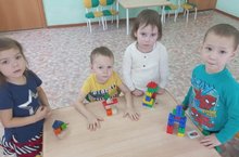 Сегодня на занятии дети младшей группы упражнялись в умении строить домик из строительного материала.