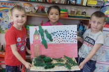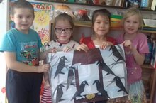 Дети старшей группы выполнили коллективную работу "Вороны на кормушке"