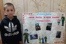 С целью формирования чувства уважения к Российской армии, воспитания в детях желание быть похожими на своих отцов и дедов, желание служить Родине оформили фотовыставку "Мой папа и дед были солдатами".