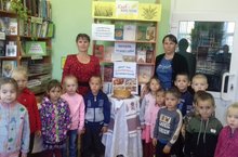 Сегодня состоялась экскурсия в библиотеку СДК. Библиотекарь Ефимова О.И. провела беседу "Вот он хлебушек душистый".