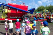 8 августа прошла одна из интересных для детей экскурсий - Экскурсия в машинно-тракторный парк. Дети с огромным интересом рассматривали сеялку, комбайн, сортировку, погрузчик. Они узнали: сколько зерна можно намолотить на комбайне, какие действия выполняет трактор. Ребята еще раз убедились, что труд механизатора очень сложный, и каждая минута во время сева и уборки дорога. Экскурсия детям очень понравилась.