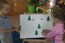 С детьми младшей группы выполнили аппликацию "Зимняя сказка" и закрепили понятие о том, что нельзя рубить елочки в лесу, что елочку можно сделать из разных материалов. В выполнении аппликации была использована манка. Это очень простая техника, поверьте. Рисунок получается необычным, делается быстро, а детям очень нравится делать такие картины.Кроме того, это полезно для развития мелкой моторики.