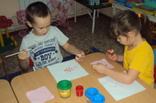 С воспитанниками детского сада провели развлечение "Забавы с красками" (воспитатели Маланчева О.Н. и Аютова Н.М.)