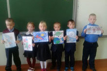 На уроке английского языка первоклассники путешествовали по загадочным планетам, говорили о тайнах планеты. Урок был посвящен запуску первого спутника Земли. -