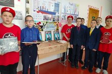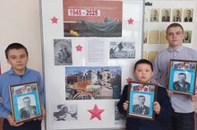Юнармейцы 7 класса с учителями истории (Захаровой Г.А. и Маланчевой О.Н.) оформили выставку «Наши земляки – участники Сталинградской битвы».