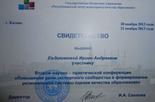 В Казани 20 -21 ноября прошла вторая научно – практическая конференция «Повышение роли экспертного сообщества в формировании региональной системы оценки качества образования». На этой конференции участвовала учительница русского языка и литературы Евдокимова И.А. -