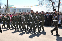 По традиции в районном центре каждый год проходит парад. На этом параде участвовали и наши учащиеся.