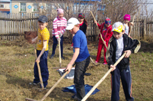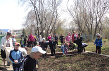Дружный 5 класс со своим классным руководителем Романовской Н.П. помогают ветеранам труда.