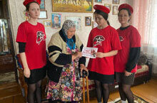 Члены отряда юноармейцев поздравили тружениц тыла, детей войны с Днем Победы.