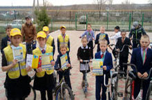 Отряд ЮИД «Вираж» провел беседу с юными велосипедистами. Они вручили им памятки и буклеты.