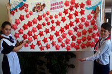 В школе началась акция «Звезда Победы». Суть акции заключалась в следующем: каждый участник акции изготавливает из красной цветной бумаги звездочку, где указывает фамилию, имя, отчество родственника, воевавшего в Великой Отечественной войне 1941-1945 годов. -