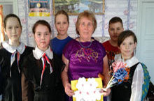 Наследники 5 класса поздравили учителя – ветерана Еферову Е.Ф. с наступающим праздником (классный руководитель Еферова С.А. -