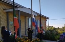 Флаг күтәрү. 05.09.2022 Яңа уку атнасы гимн астында флаг күтәрү белән башланып китте,балаларга тырышып, 4 ле 5 ле билгеләренә укуларын теләп калабыз.
