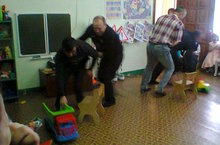 В детском саду прошел утренник посвященный Дню защитника отечества . Были приглашены папы. Они с удовольствием принимали участие в различных конкурсах.