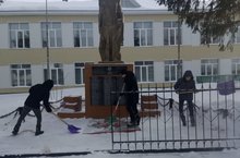 11 нче сыйныф укучылары Бөек Ватан сугышында һәлак булган якташлар хөрмәтенә куелган һәйкәл тирәсен системалы рәвештә кардан чистартып торалар.