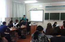 Учительница биологии и химии Завагира Багдануровна провела открытый урок с восмиклассниками на тему "Газообмен в органах и тканях и в легких"