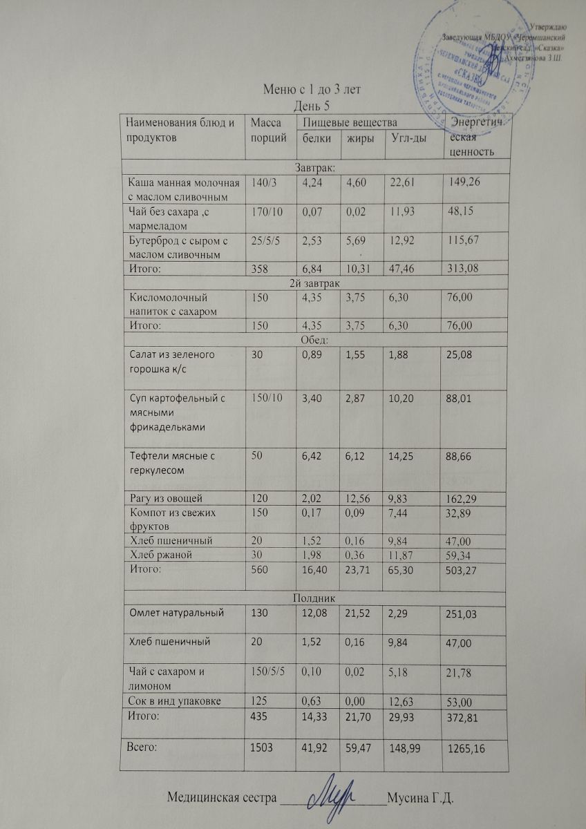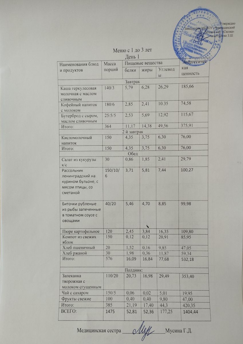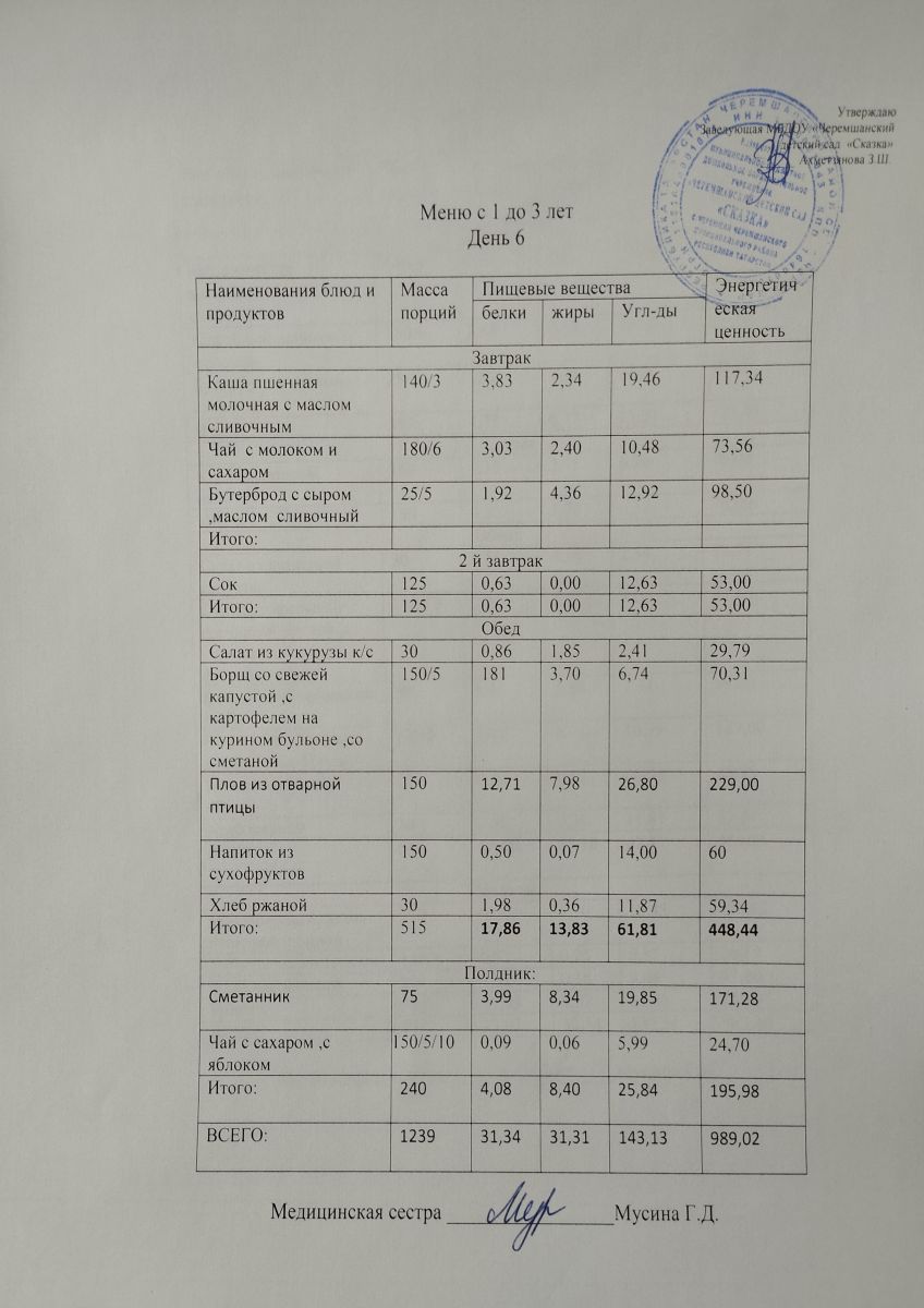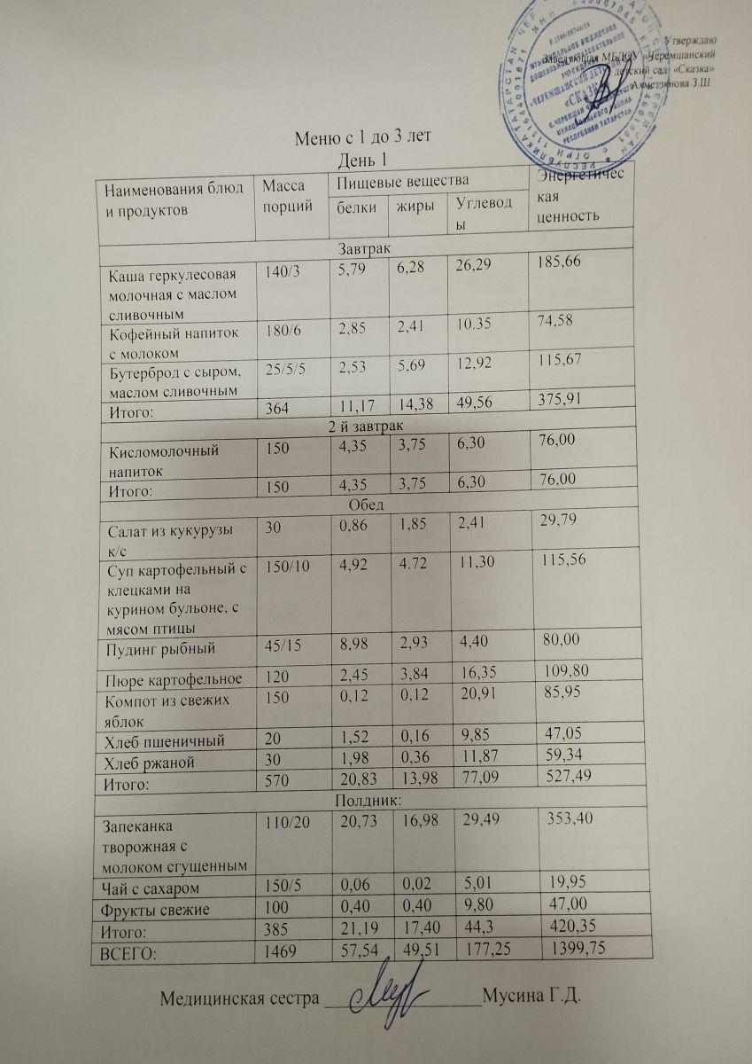 Примерное 10ти дневное меню для детей от 1-3 лет (ОСЕННИЙ ПЕРИОД)