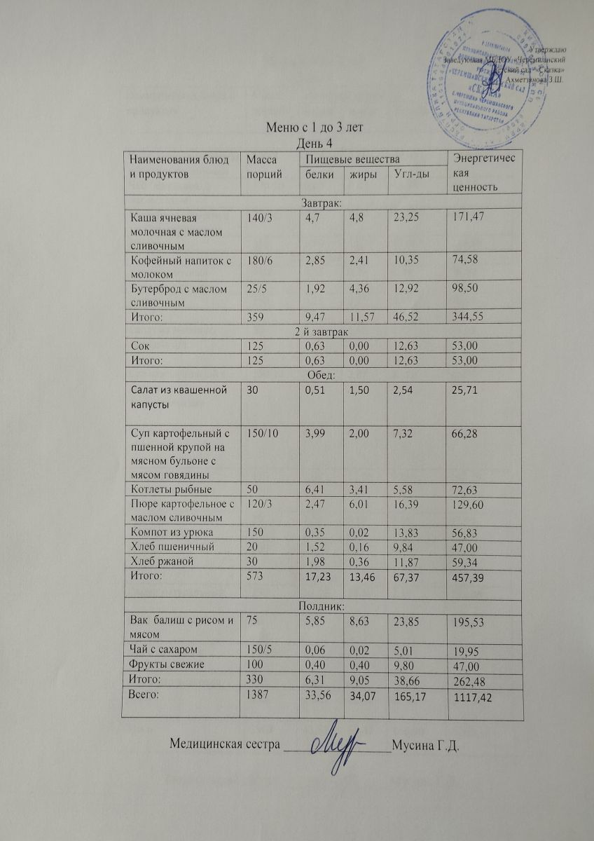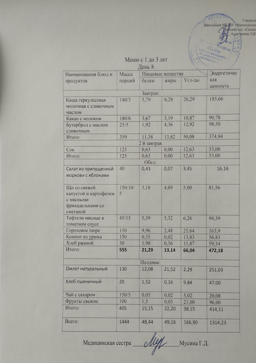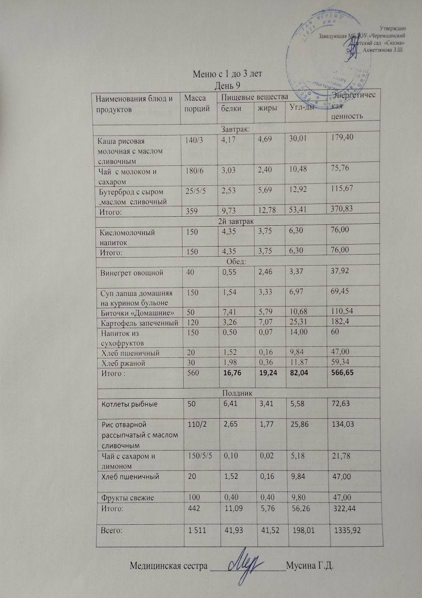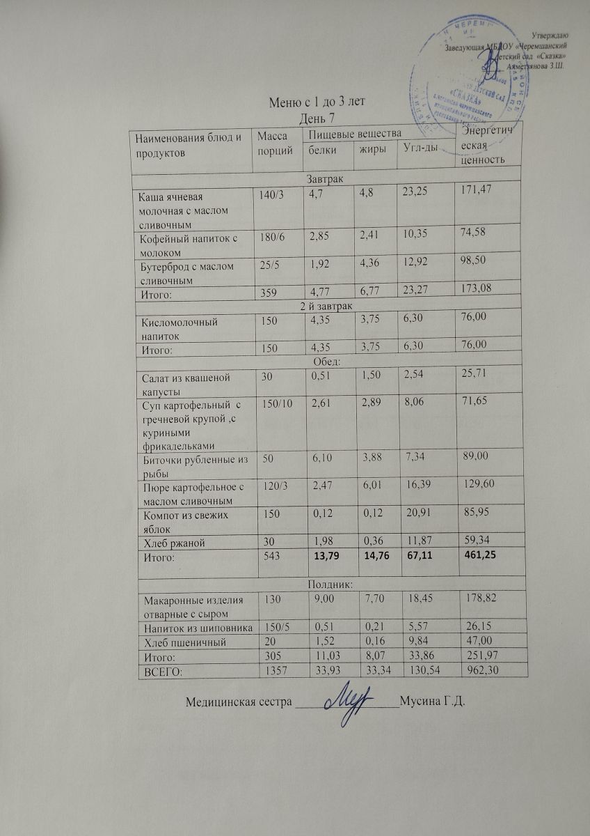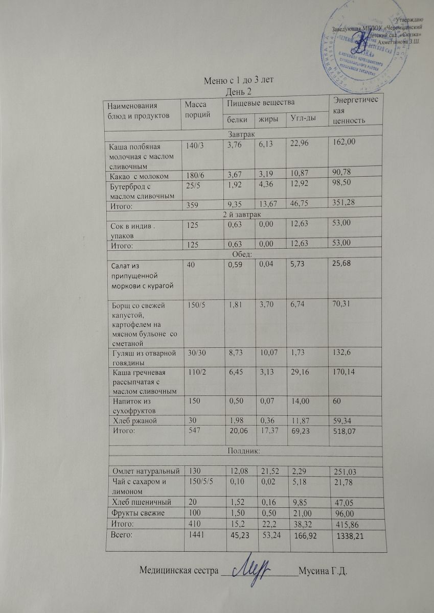 Примерное 10ти дневное меню для детей от 1-3 лет (ОСЕННИЙ ПЕРИОД)