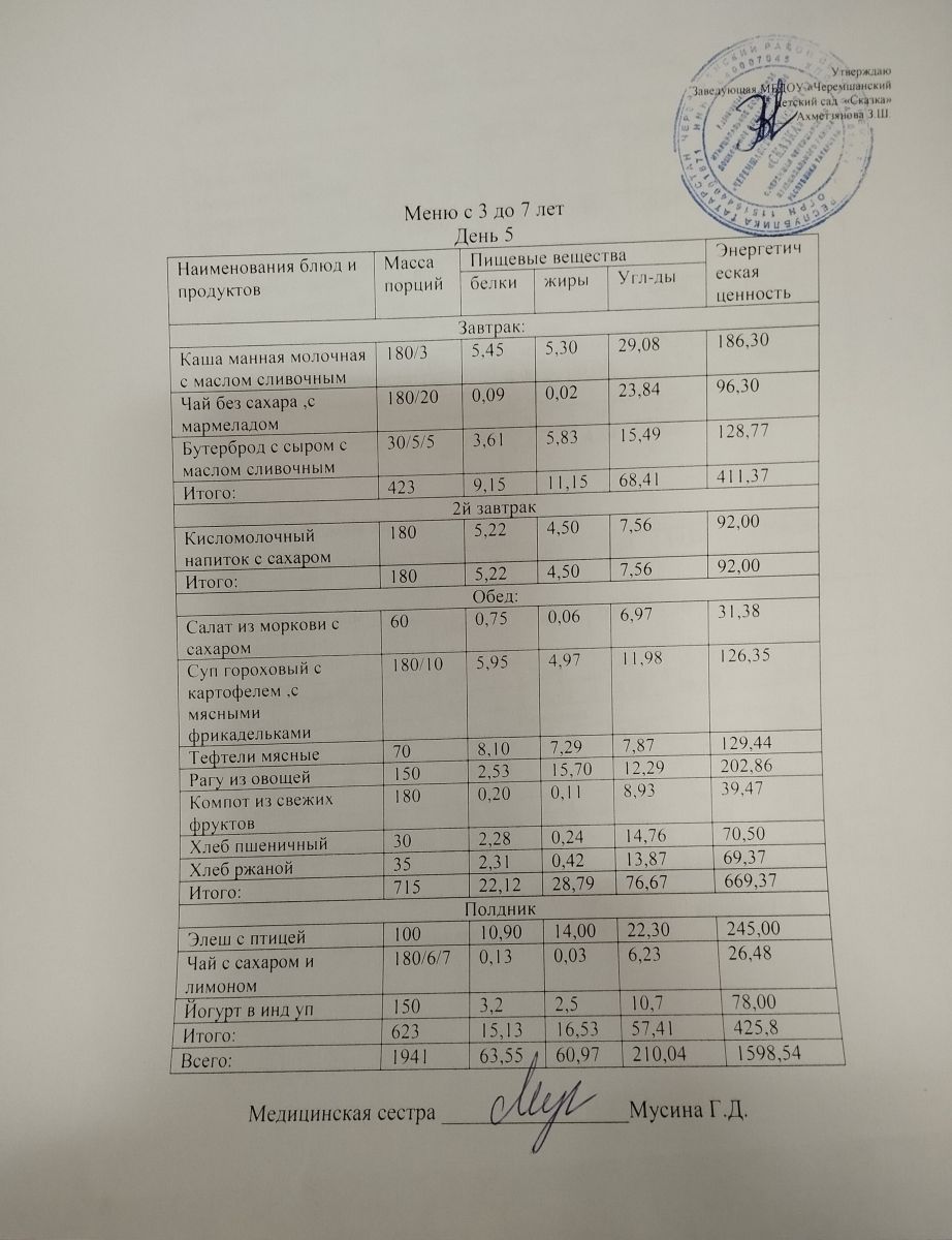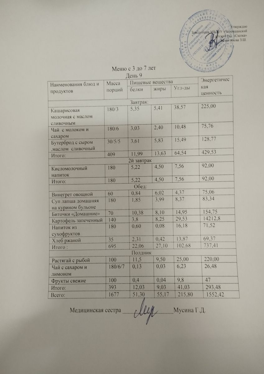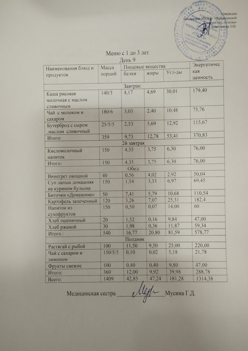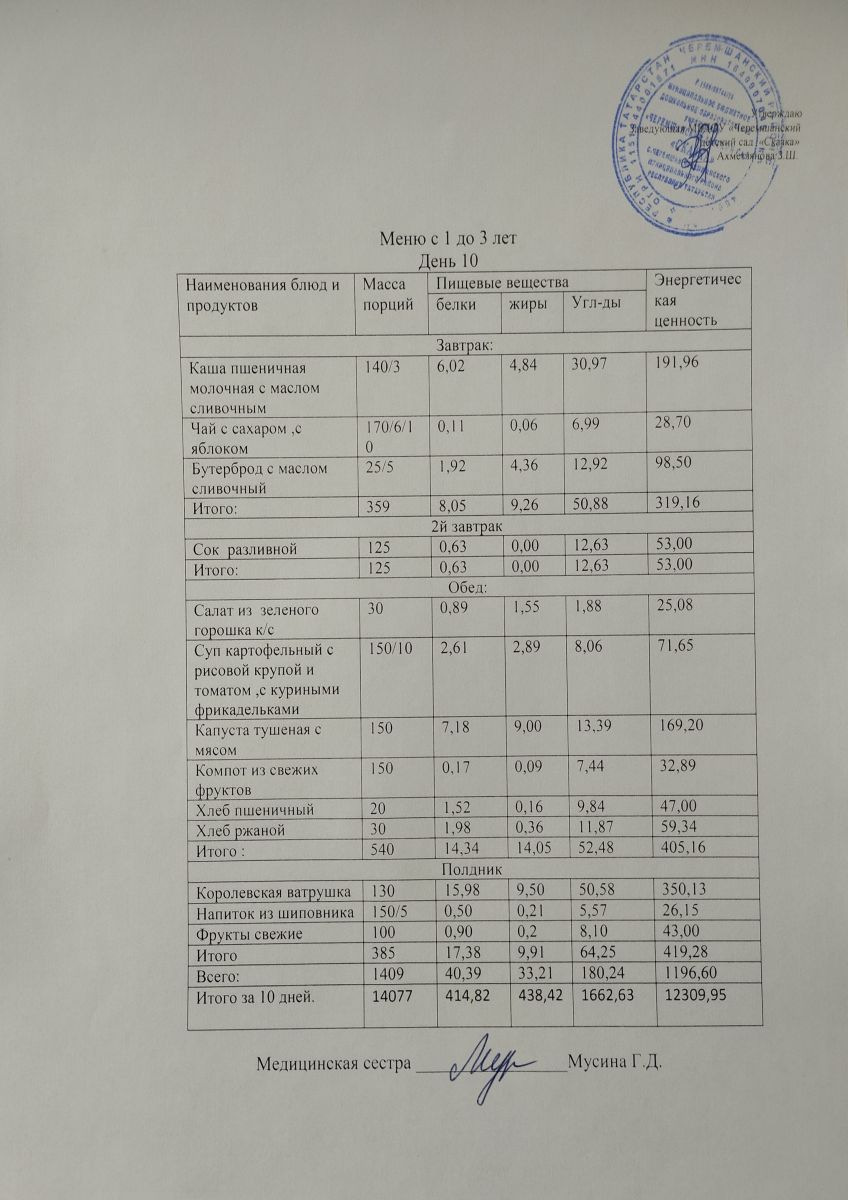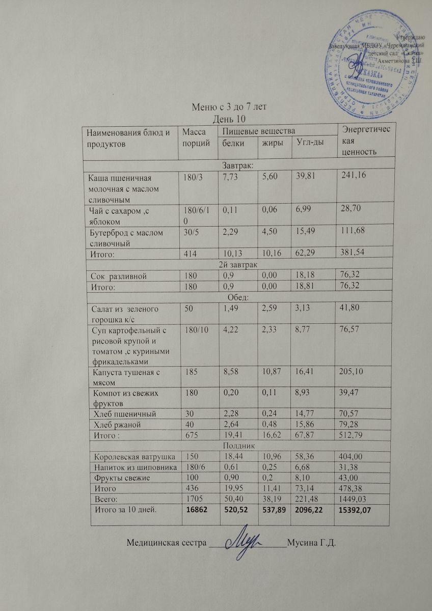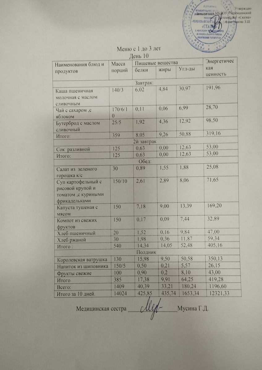Примерное 10ти дневное меню для детей от 3-7 лет (ОСЕННИЙ ПЕРИОД)