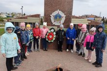 Возложение цветов к памятнику воинам, погибшим во время Великой Отечественной войне 05.05.2022 В преддверии главного праздника нашей страны, воспитанники нашего детского сада вместе со своими воспитателями отправились к вечному огню.