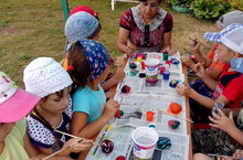 Зурлар һәм мәктәпкә әзерлек төркемнәре балалары ташларга рәсем төшерделәр. Алар умарта, чәчәк, бака, җиләк, камка тутай, күбәләк, таулар, кояш, балыклар ясадылар. Бу шөгыль балаларга бик охшады. Ташларга рәсем ясап эшләгән эшләренә сокланып, шатландылар. Ташлар тылсымлыга әйләнде.