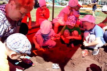 15 август- Археологлар көне. Шул уңайдан җәйге эш планына нигезләнеп бакчабызда "Бар һөнәрләр дә яхшы" атналыгы ( 14 августтан - 18 августка кадәр) үткәрелде. Балалар комлыкта казу эшләре белән шөгылләнделәр. Аларга тәрбияче Гыйләҗева Г.М. белән алдан күмеп куелган әйберләрне казып эзләп табу бик охшады. Археолог кем ул икәнен дә искә төшереп ныгыттылар.