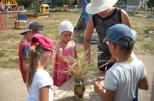 В этот день мы рассматривали колосья зерновых растений. Побеседовали на тему "Откуда хлеб пришел",вспомнили пословицы и поговорки о хлебе.