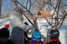В нашем детском саду стало традицией проведение акции "Кормушка". Зима - трудное время для птиц и нужно поддержать их, подсыпать корм в кормушке. Дети нашего детского сада и их родители ответственно относятся к этому делу, приносят корм, подкармливают птиц.