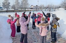 Во время прогулки педагоги организуем с ребятишками разнообразные игры и состязания. -