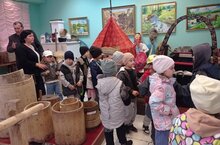 Сегодня дети подготовительной группы нашего детского сада посетили краеведческий музей нашего района. Цель данной экскурсии - формирование у дошкольников нравственно-патриотических чувств, приобщение к истории, культуре и традициям родного края.