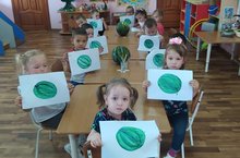 Но не только историей ограничилось знакомство с арбузом. Ребята узнали обо всех полезных и вкусных качествах этой сочной ягоды. Они отгадывали загадки о форме и цвете арбуза, о его сладком мякоти и больших черных семечках. А после этого рисовали воплощая свои представления о летнем вкусе арбуза.