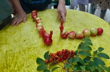 Для создания осенней поделки нам понадобились: яблоки, рябина, зубочистки.