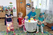 Основная задача детского сада - подготовить ребенка к самостоятельной жизни, дав ему для этого необходимые умения, навыки, воспитав определенные привычки. Дети второй группы раннего возраста в режимных моментах играют в сюжетно-ролевые игры.