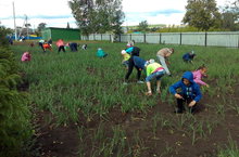 С 6 соток пришкольного участка в этом году собрали одну тонну лука для школьной столовой.