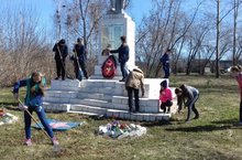 Очистка территории от мусора возле памятника "Воину-освободителю". 05.05.2018