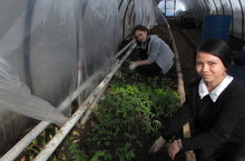 Участники школьной компании " Бизнес леди" по выращиванию рассад помидоров и перцев провели пикировку овощей в теплицу.