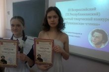28 марта 2018 года на базе лицея № 78 им. А.С.Пушкина (г.Набережные Челны) состоялся IX Республиканский конкурс III Всероссийского Открытого творческого конкурса "Пушкинские чтения", в котором приняли участие учащиеся нашей школы Степченко Елена и Хмелева Елена под руководством учителя русского языка и литературы Степченко Светланы Георгиевны.
